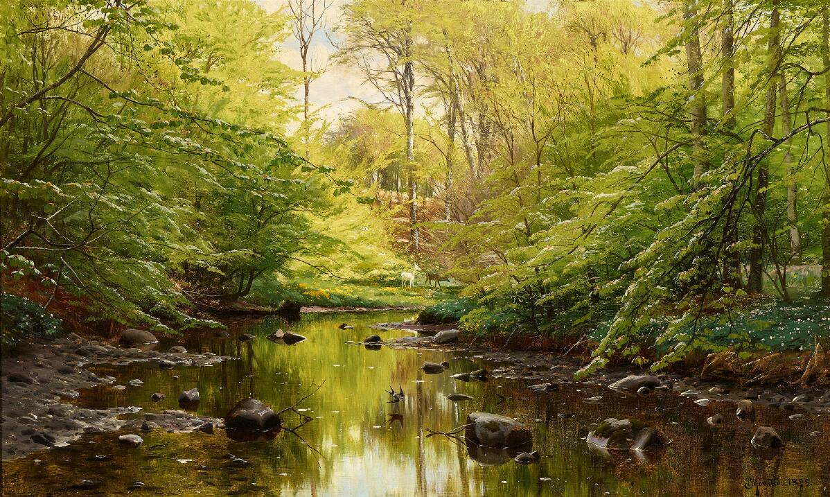 Spring day with beeches at Sæby Å (stream)