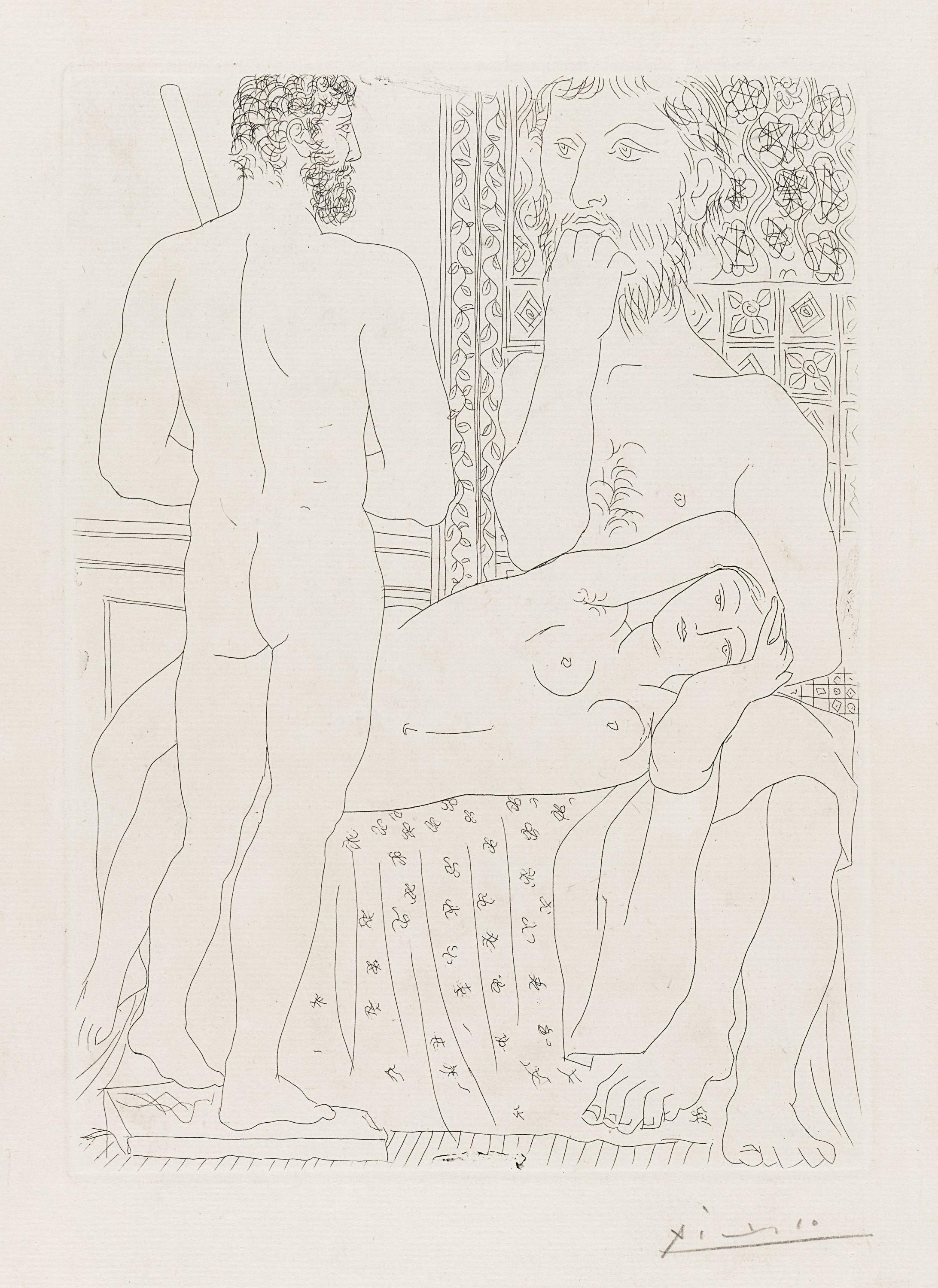 Sculpteur, Modèle Couché et Autoportrait en Hercules Sculpté