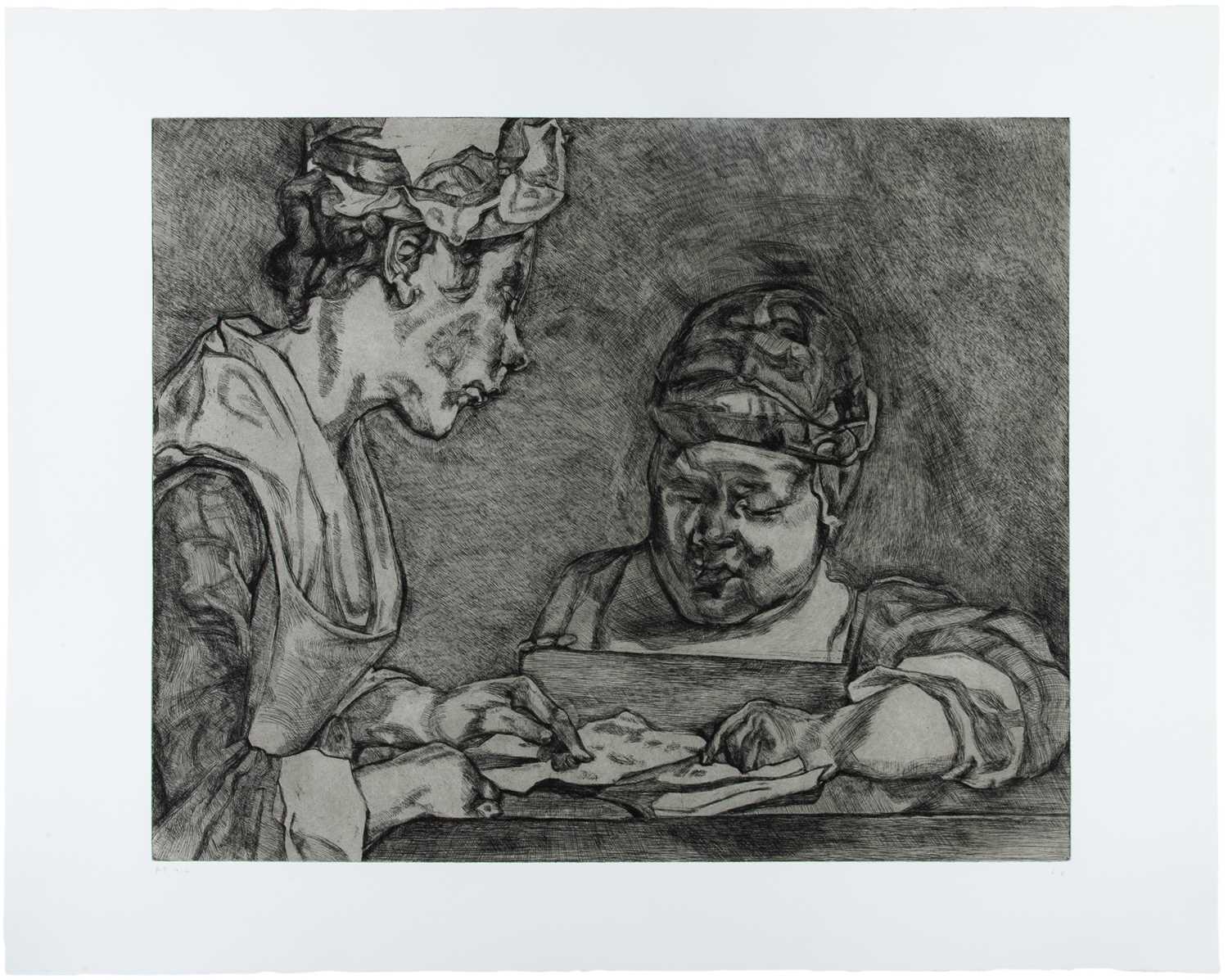 Etching with aquatint, scaping and burnishing, 1998, on Somerset textured wove paper