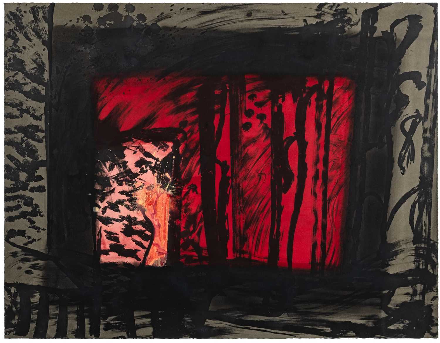 etching and aquatint printed in red and black on J. Whatman handmade wove paper