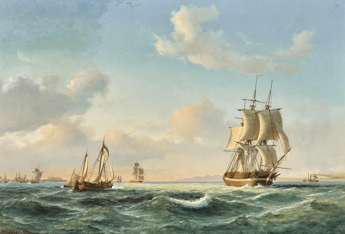 The sailing ship “Johanna” and other vessels in Sundet off Kronborg Cas...