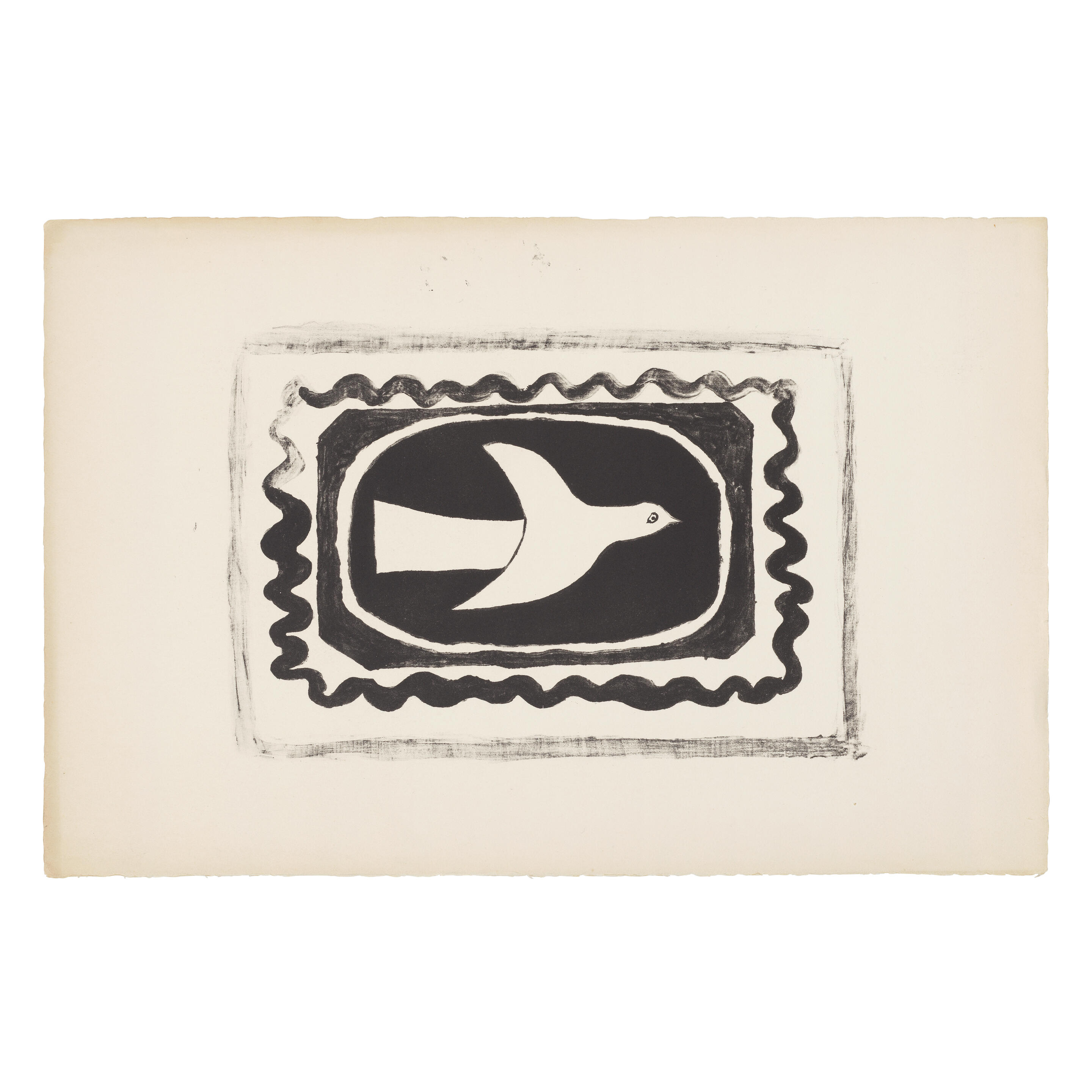 Lithograph in black, 1954, on Arches wove paper, a proof without varnish aside from the